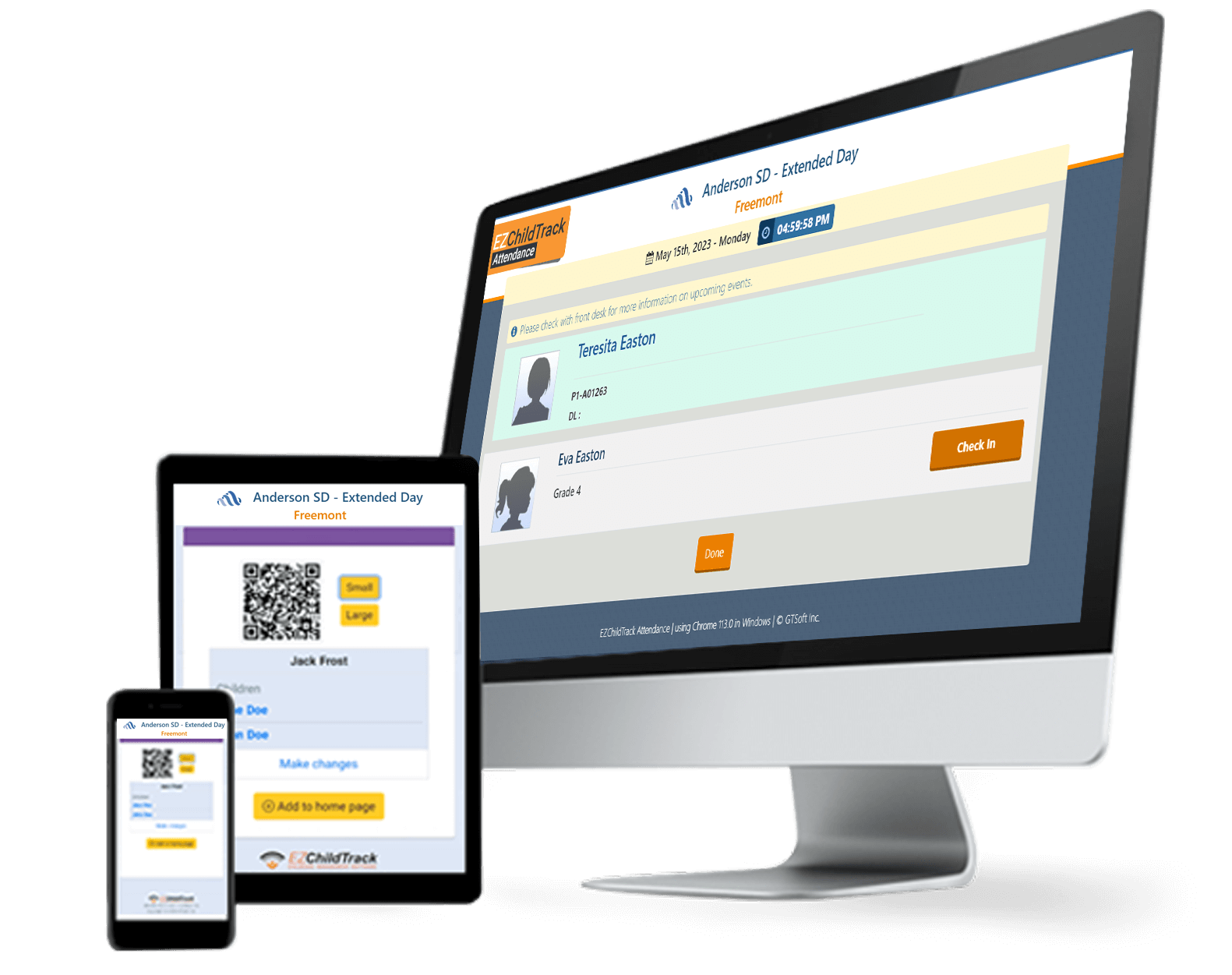 Safe & Secure Touch-less attendance to check-in / check-out student. Use computers, tablets or phones to record attendance.