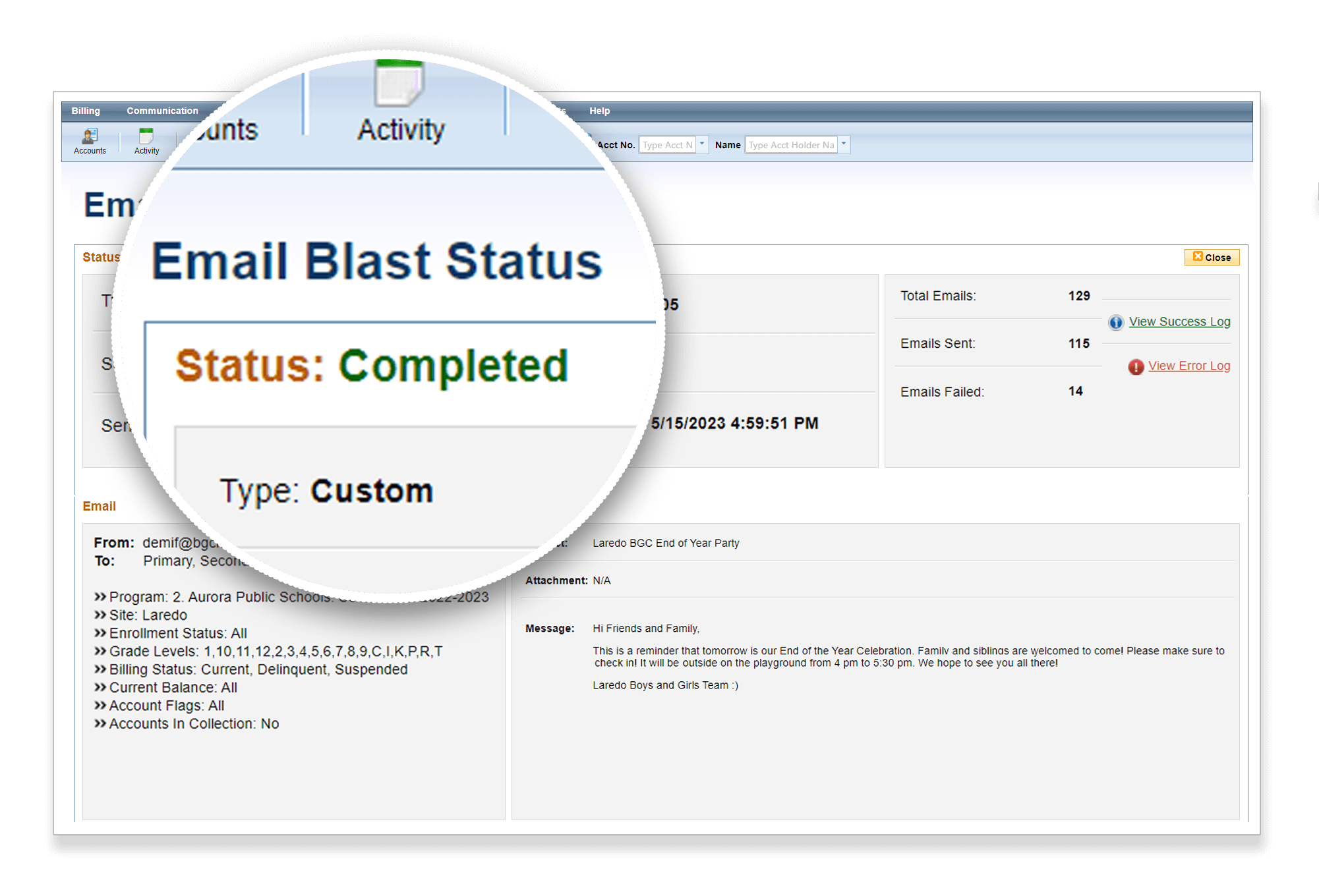 Create and send emails to account holders in bulk