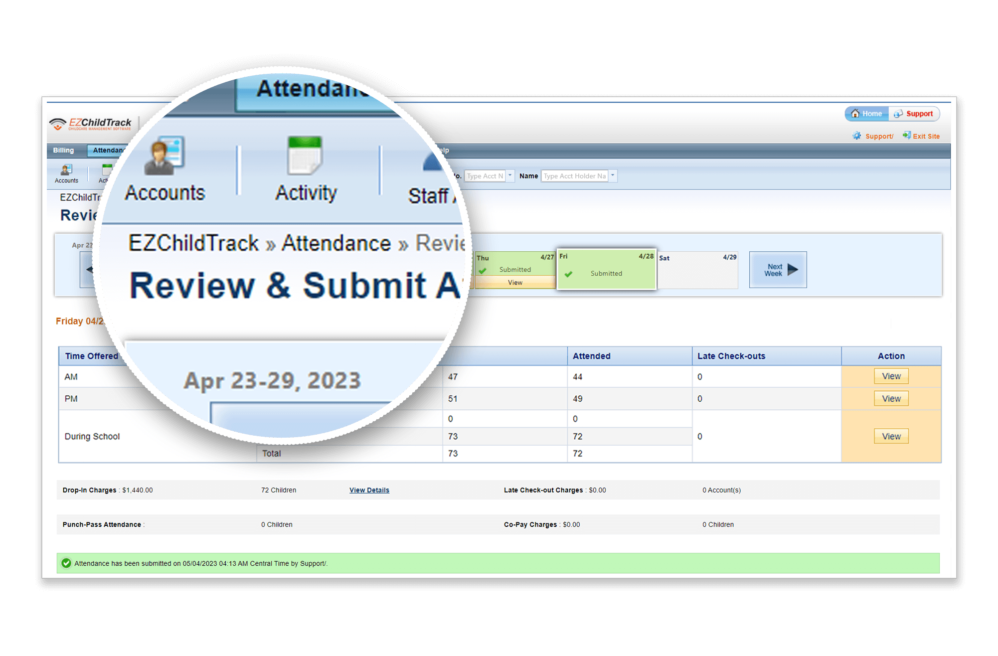 Track attendance for children and staff