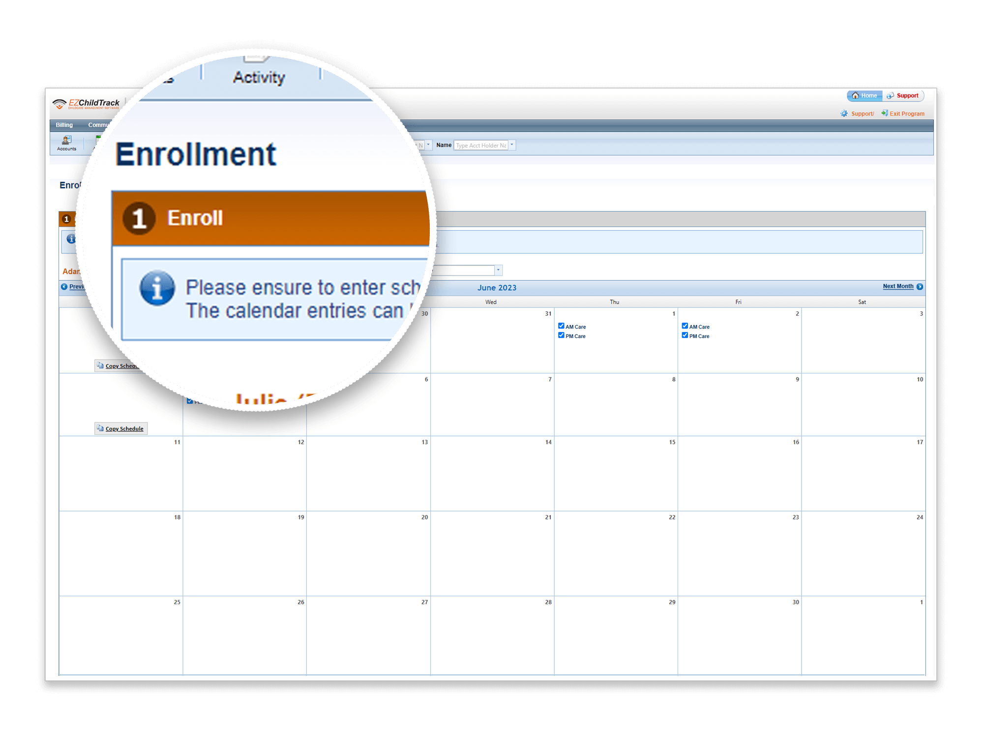Parents can enroll using the inbuilt calendar